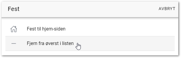 - Trykk på Fest øverst i listen eller evt. Fjern fra øverst i listen.
