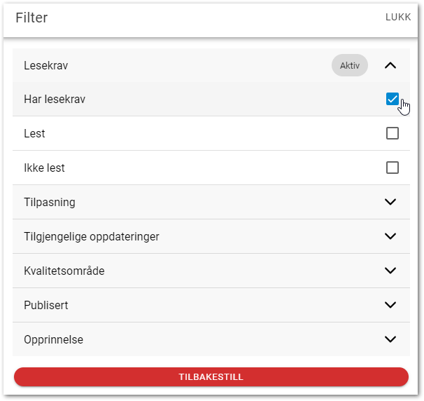 - Trykk på Lesekrav og hak på Har lesekrav.