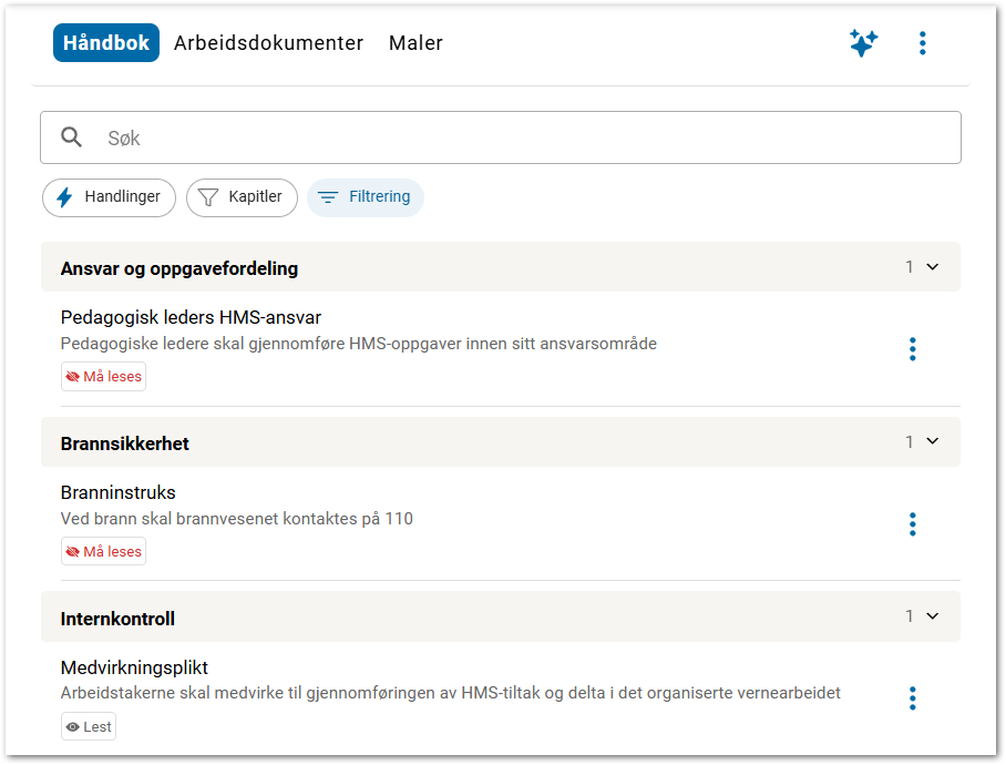 - Trykk deg inn i ønsket håndbok i hovedmenyen.