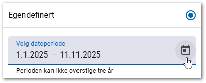 - Trykk på datovelgeren og velg Egendefinert.