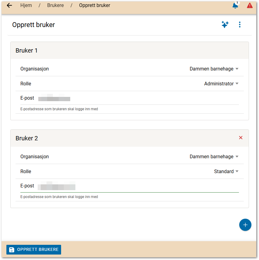 Trykk evt. på + for å legge til flere brukere.