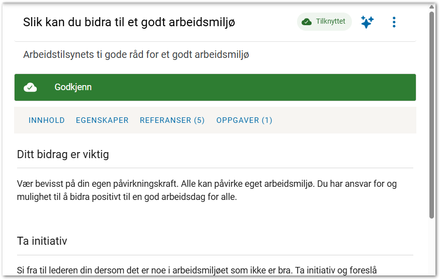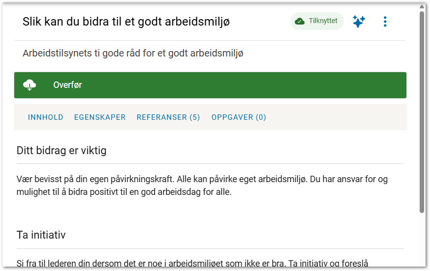 På bildet nedenfor ser vi en mal som kan overføres til bruk på en virksomhet. Når denne er overført, vil den vises i håndboken til organisasjonen.