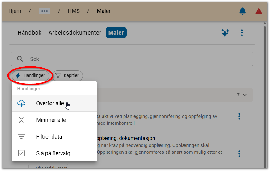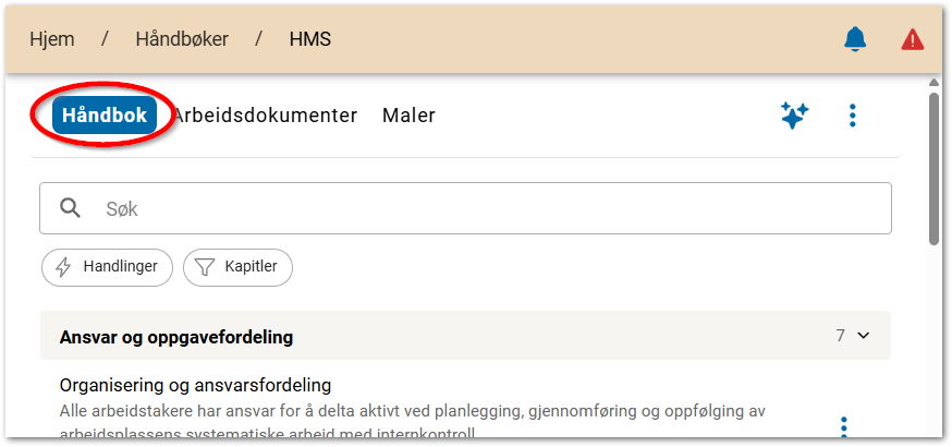 Tilgangskrav: Full tilgang til valgt håndbok.