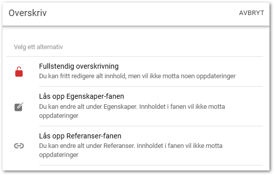Dersom du redigererer en ekstern mal, trykk på Overskriv.