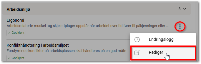 - Finn dokumentet som skal redigeres, og trykk på kontekstknappen. Velg Rediger.