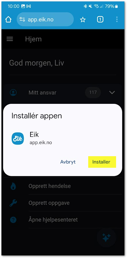 - Trykk på Legg til. Eik legger seg da som en app i app-listen på telefonen din.