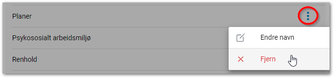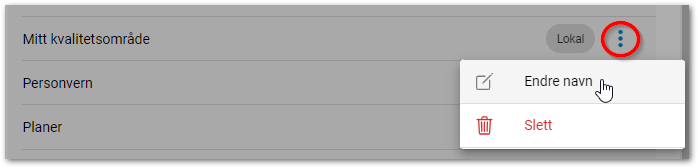 - Til høyre for kvalitetsområdet finner du kontekstknappen. Trykk på denne og deretter Endre navn.