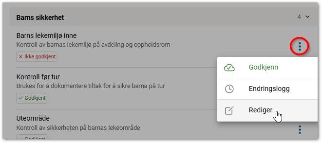 - Finn malen som skal redigeres og trykk på konteksknappen. Velg Rediger