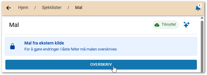 - Dersom du redigerer en ekstern mal, trykk på Overskriv.