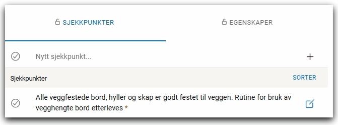 Du kan velge om punkter skal være påkrevd. Sjekklisten kan da ikke fullføres før punktet er utført.