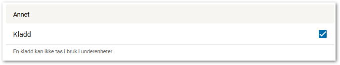 Malen kan lagres som en kladd. Dersom det er hake på Kladd, vil malen ikke kunne tas i bruk av underenheter.