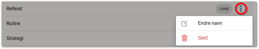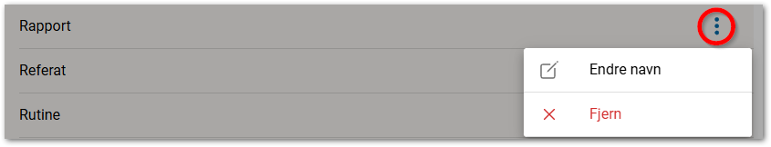 - Til høyre for dokumenttypen finner du kontekstknappen. Trykk på denne og deretter Endre navn.