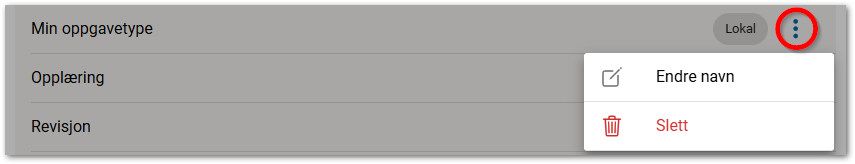 - Til høyre for oppgavetyper som ikke er låst finner du kontekstknappen. Trykk på denne og deretter Endre navn.