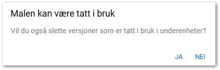 Ta stilling til om du ønsker å slette alle versjoner av malene som er tatt i bruk i underenheter.