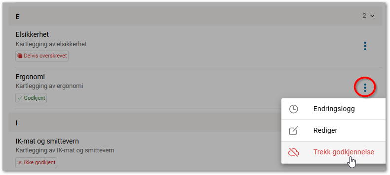 Når malene du ønsker å trekke godkjennelse på er markert, trykk på Flervalg og Trekk godkjennelse.