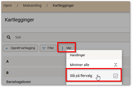 Trykk på Mer og velg Slå på flervalg.