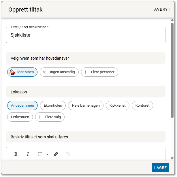 - Tiltaket legger seg deretter som Åpen under Tiltak i menyen og kan viderebehandles.