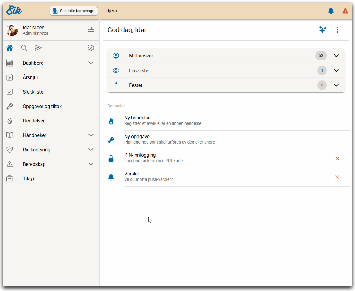 For å kunne benytte dashbord må en ha full tilgang til dashbord. Man kan da se rapporter for sin egen og underliggende organisasjoner som man har tilgang til. En kan slette en eller flere rapporter i et dashbord en har opprettet selv, men ikke i et dashbord som er delt via en annen person.