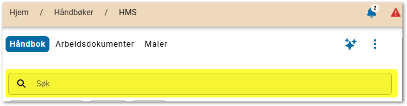- Skriv inn søkeord i søk-feltet og det søkes umiddelbart.