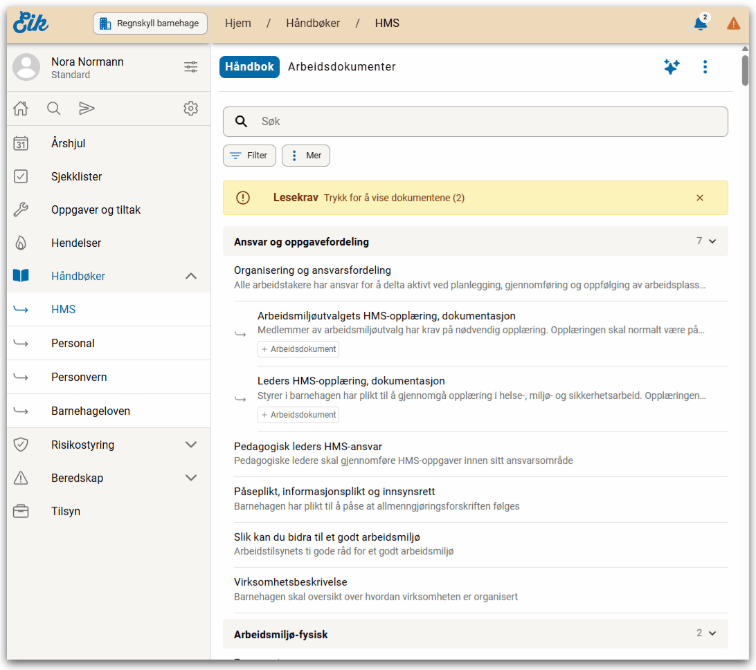 De fleste menyvalgene i Eik har mulighet for søk.
