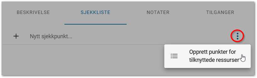 Velg Opprett punkter for tilknyttede ressurser: