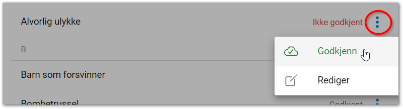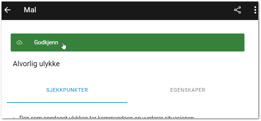 Trykk på kontekstknappen til høyre for beredskapsplanen. Godkjenn.