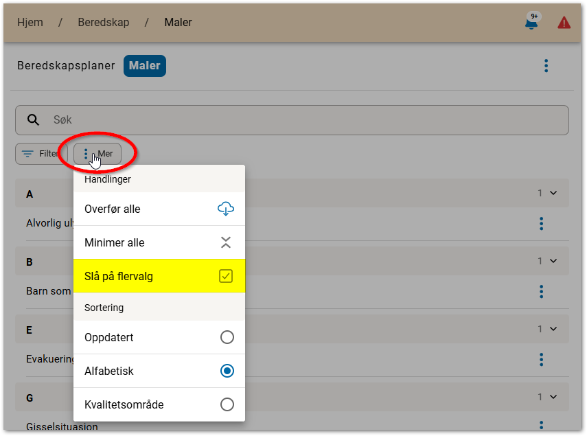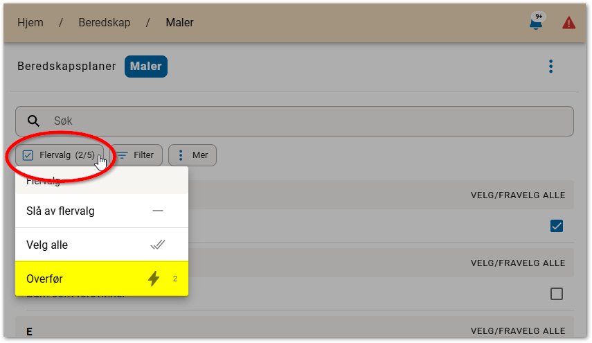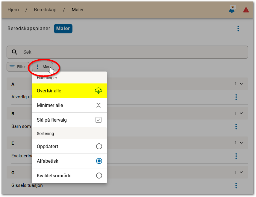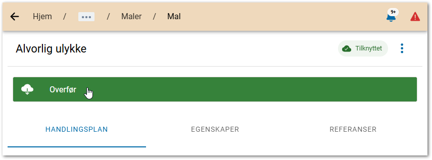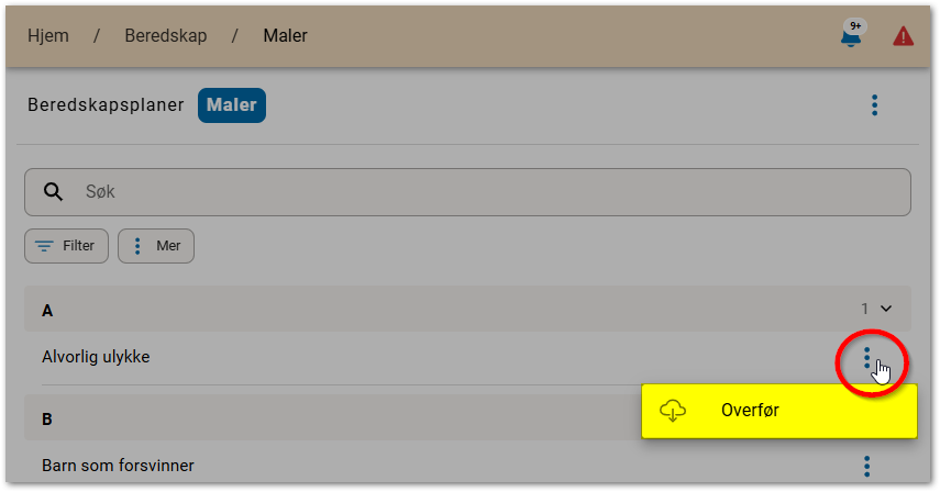 Alternativ: Trykk på beredskapsplanen for å åpne den. Trykk deretter på Overfør.