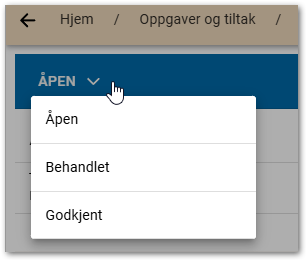 En bruker med begrenset tilgang til oppgaven kan endre status fra Åpen til Behandlet. Da kan brukere med full tilgang til oppgaver godkjenne oppgaven, eller eventuelt åpne oppgaven igjen dersom den ikke er utført tilfredsstillende. Ved statusendringer, vil brukerne som har tilgang til oppgaven få varsel om dette.