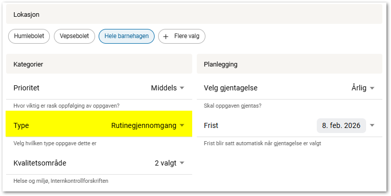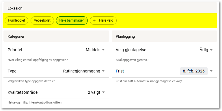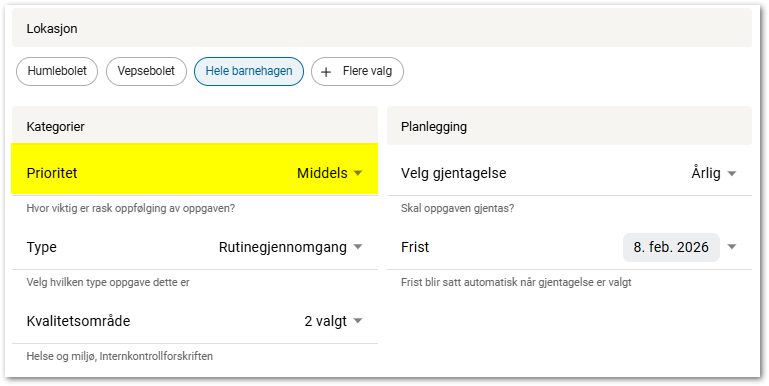 Velg hvilke lokasjon oppgaven utføres for.Prioritet
