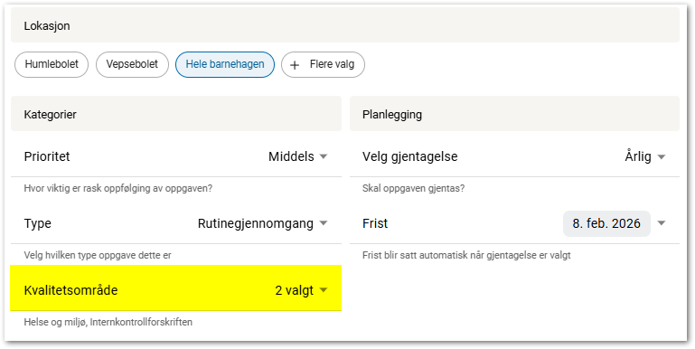 Velg hvilke kvalitetsområde oppgaven tilhører. Du kan velge flere kvalitetsområder.