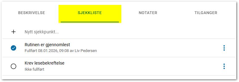 For å legge til et nytt sjekkpunkt, skriv inn ønsket tekst i feltet "Nytt sjekkpunkt" og trykk på pilen for å lagre.
