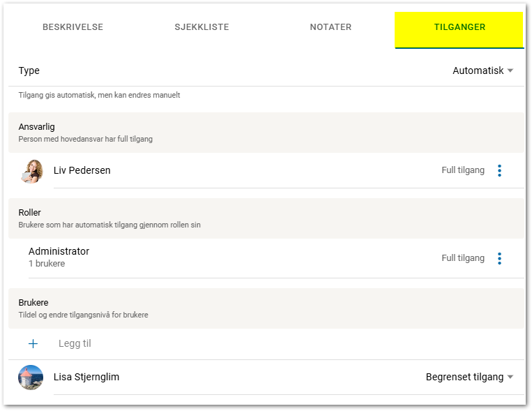 AnsvarligViser hvem som er ansvarlig for å behandle oppgaven og vil alltid ha full tilgang til oppgaven.