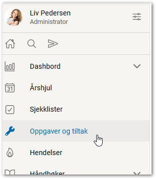 Trykk på Oppgaver og tiltak i menyen.