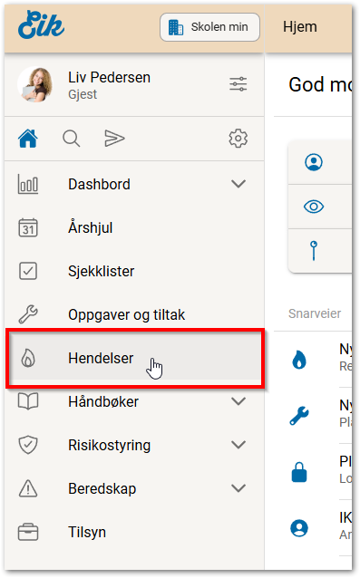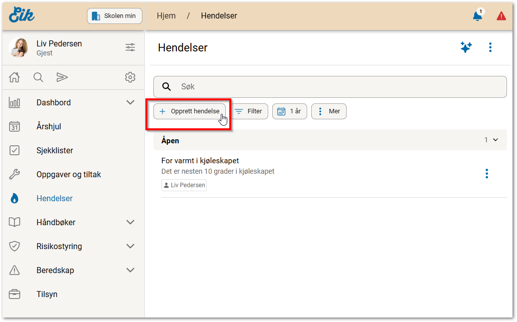 Alternativt kan du trykke på Hendelser i menyen. Du får da en oversikt over åpne, behandlede og godkjente hendelser.