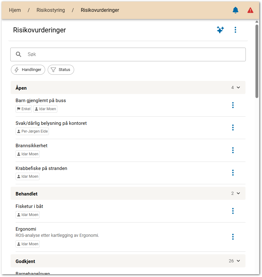 - Trykk på Risikostyring -> Risikovurderinger i menyen.
