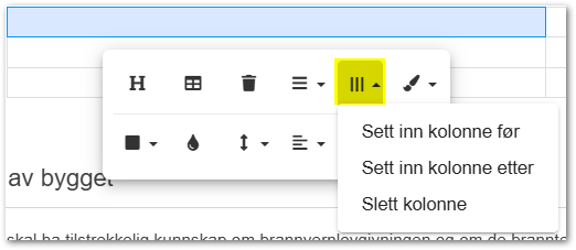 Trykk der du ønsker å redigere i kolonnen- velg Kolonne og velg Sett inn kolonne før, Sett inn kolonne etter eller Slett kolonne