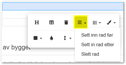 Trykk der du ønsker å redigere i raden: Velg Rad og velg deretter Sett inn rad før, Sett inn rad etter eller Slett rad.