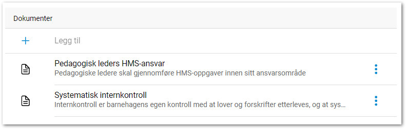 Det kan legges til dokumenter som er aktuelle for årshjulet.