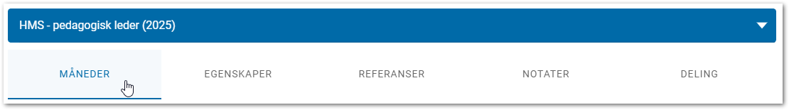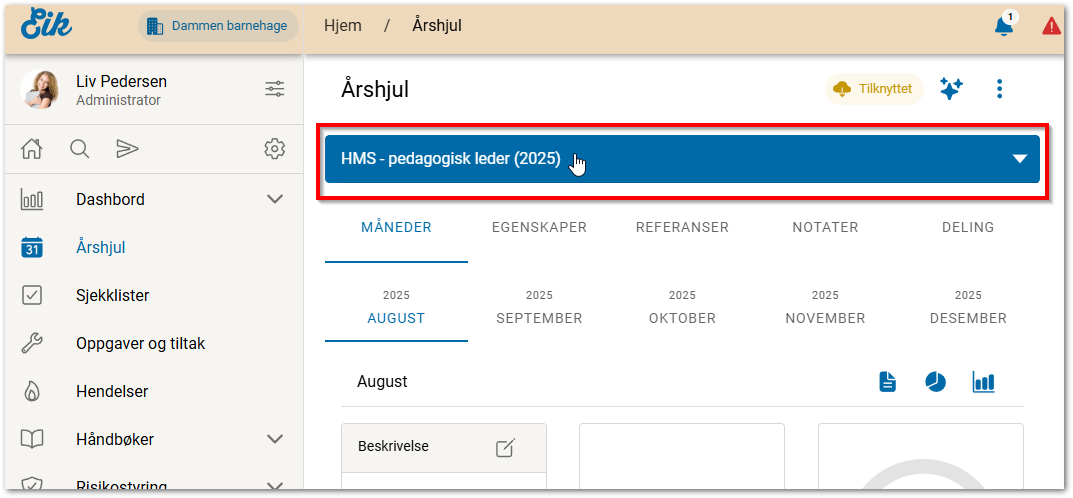 I denne veilederen står vi i Årshjul i menyen. For å navigere mellom årshjul, trykk på den blå linjen og velg ønsket årshjul.